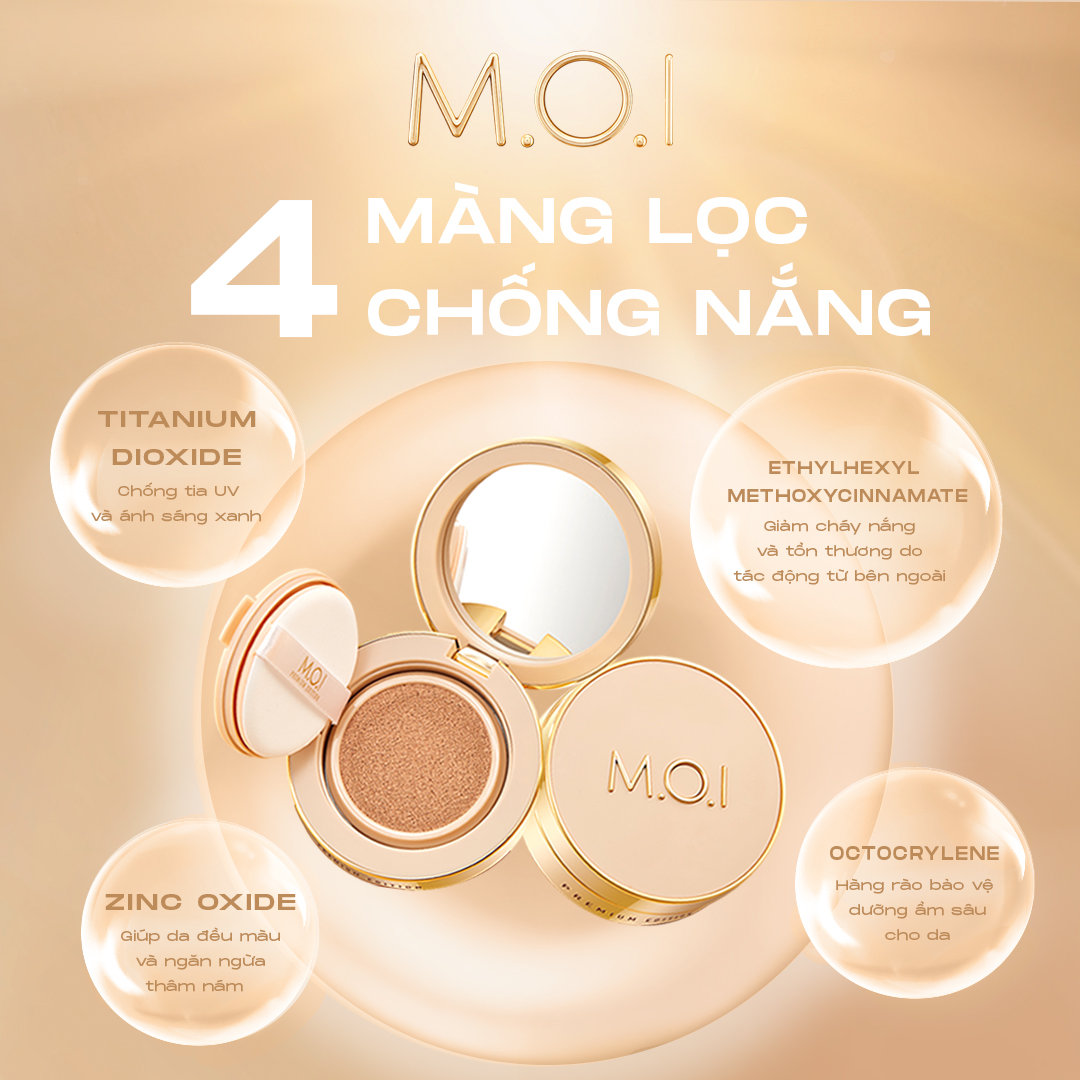Premium Baby Skin Cushion – dòng phấn nước của M.O.I thuộc phiên bản đột phá với công nghệ cải tiến mới bởi thành phần gấp 3 lần dưỡng chất quý hiếm, giúp dưỡng da từ bên trong và làm đẹp từ bên ngoài tạo một lớp nền thật tự nhiên, mỏng mịn và căng mướt như làn da em bé.