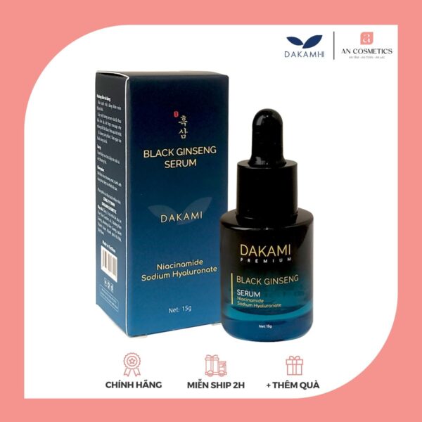Serum sâm đen Dakami Black Ginseng là sản phẩm dưỡng da cao cấp được chiết xuất từ nhân sâm đen quý hiếm kết hợp với các thành phần thiên nhiên an toàn, mang đến giải pháp toàn diện cho làn da lão hóa.