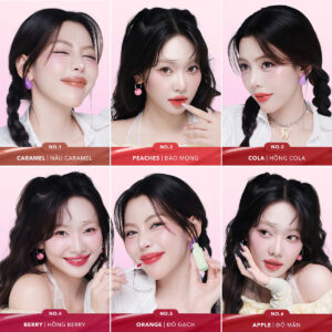 Son Tint Bóng Gummy sở hữu 6 gam màu trẻ trung, tươi tắn và đầy ấn tượng, phù hợp với mọi tông da và phong cách.
