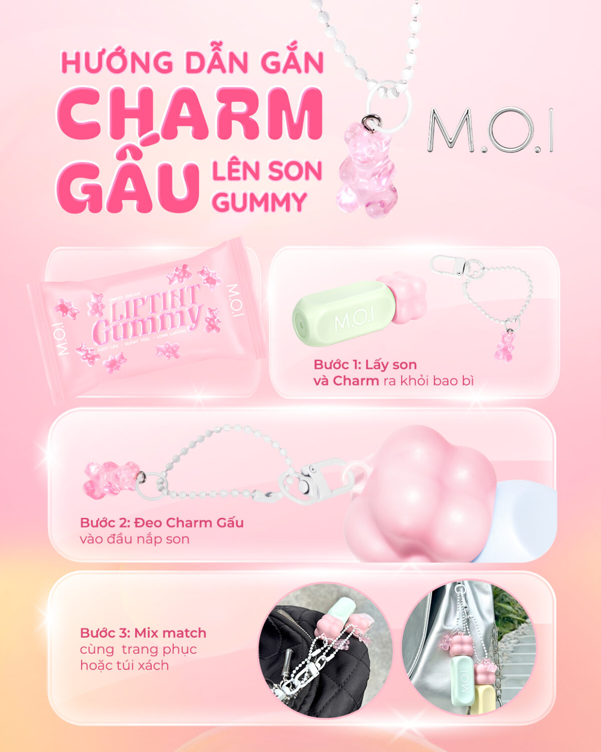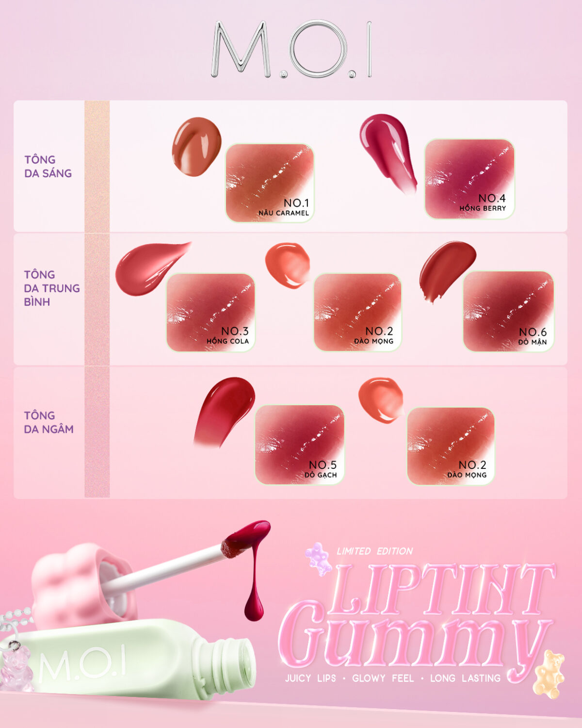 Lấy cảm hứng từ những viên kẹo dẻo Gummy trong veo, ngọt ngào, M.O.I Cosmetics chính thức ra mắt Bộ Sưu Tập Son Tint Bóng Gummy. Đây là dòng son tint bóng đầu tiên của M.O.I, hứa hẹn mang đến cho những cô nàng “hảo ngọt” một trải nghiệm hoàn toàn mới.